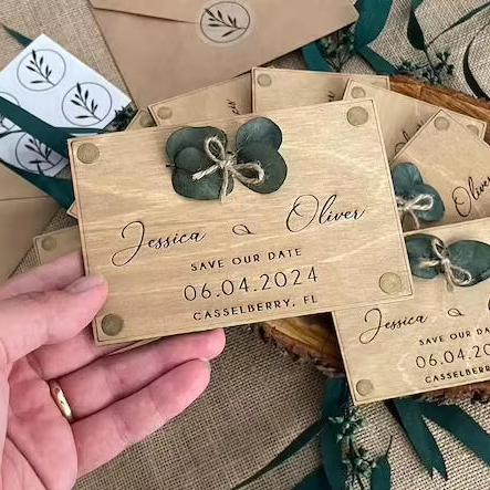 بطاقة دعوة خشبية شخصية لحفلات الزفاف