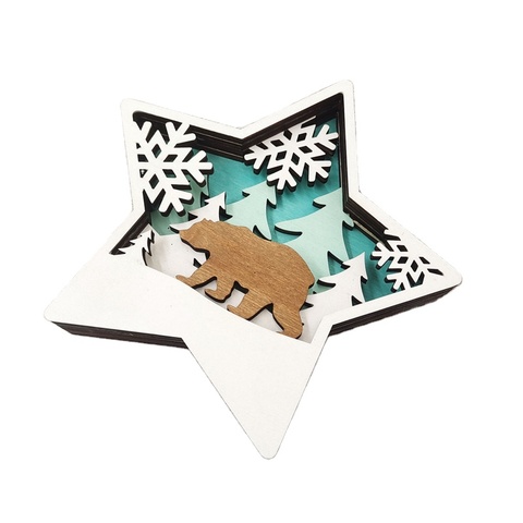 Neuheit Kreative Mehrschichtige Weihnachts-Tischdekoration Leuchtende Holzgeschnitzte Waldtiere Schmetterling-Deko